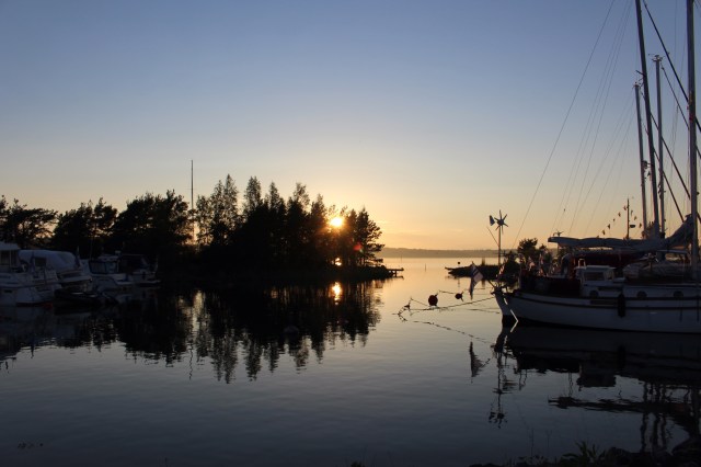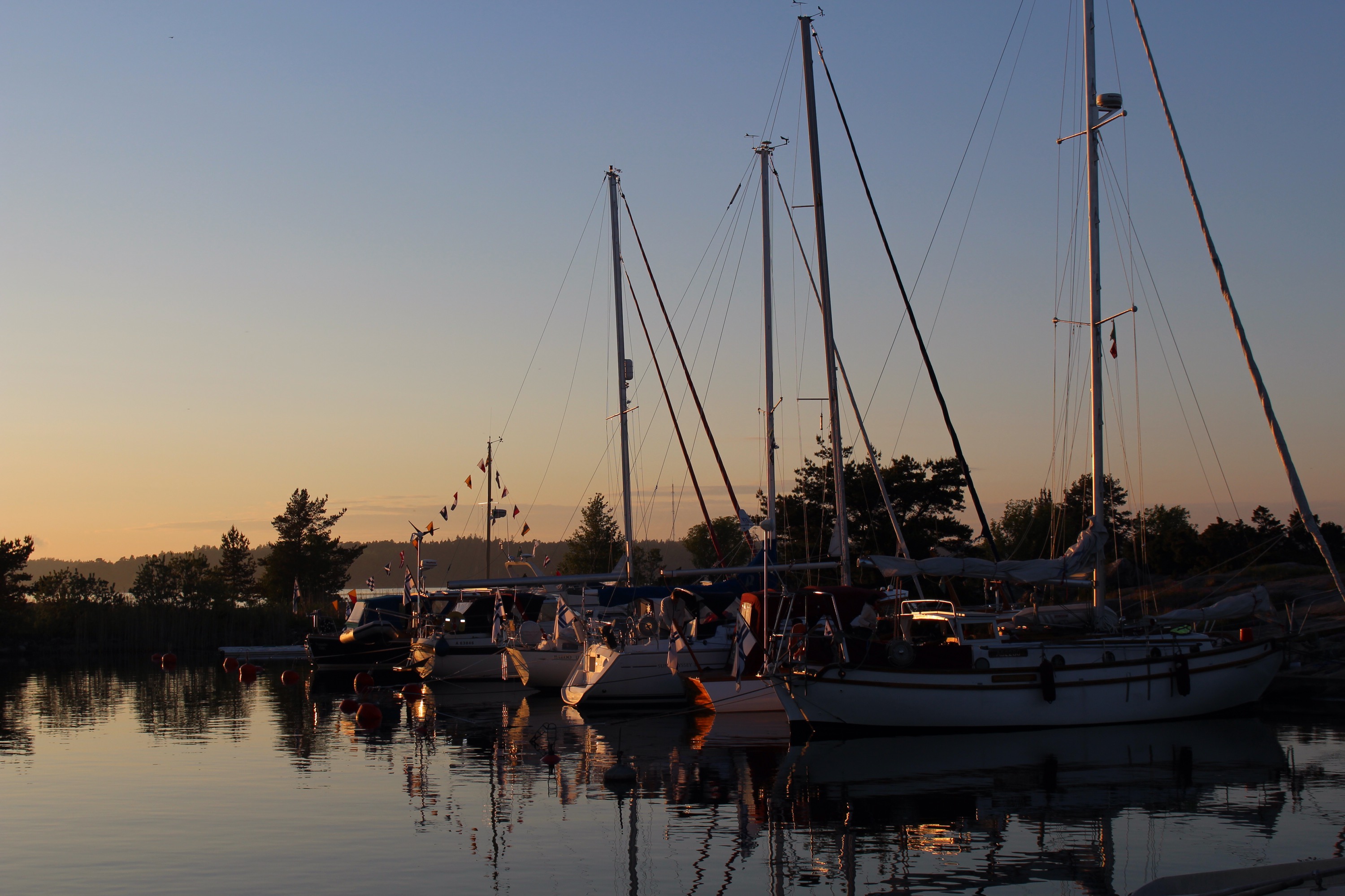 Saavuimme torstaina noin neljän aikaan iltapäivällä. Meno satamassa oli vilkasta. Junnu soi täysillä, porukka oli ottanut runsaasti pohjia ja Diesel haisi. Kiitimme onneamme, että olimme päätyneet majoittumaan muualla kuin veneessä. Veneeltä siirryimme Karhulaan anoppilaan. Meripäivien avajaiset olisivat olleet kuudelta. Vettä satoi kaatamalla, joten emme jääneet kastumaan.