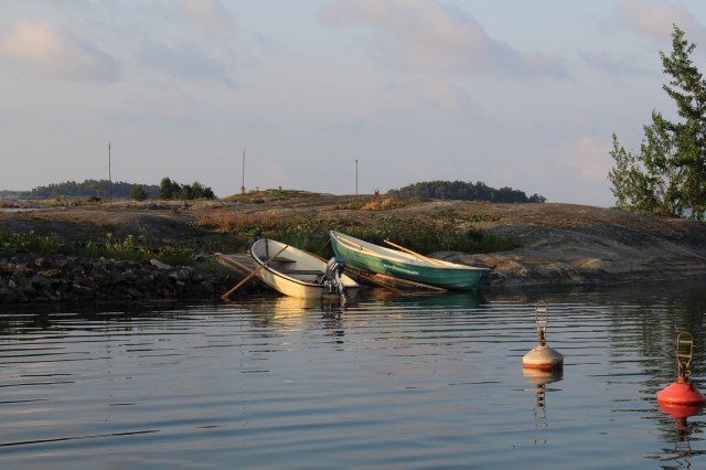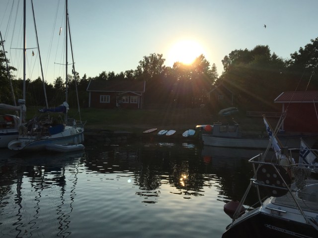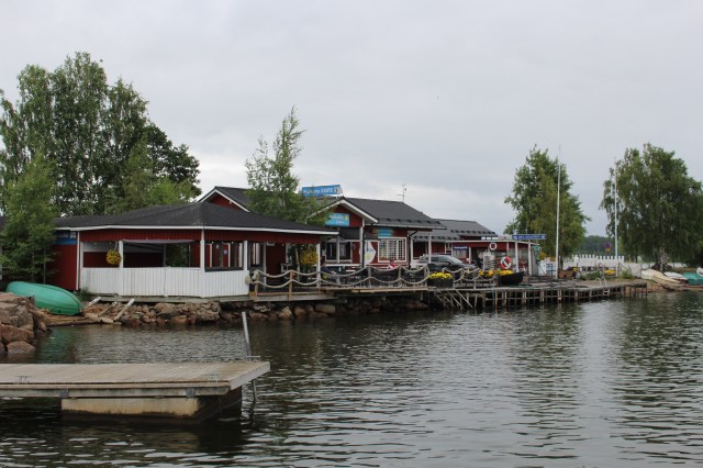 Helsingholmenissa ei ole ravintolaa. Meillä pystyy aivan hyvin kokkaamaan veneessä. Helteillä ei oikein energia riitä. Mies kokkasi päivällisen, syötiin kannella.