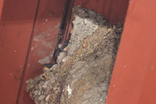 Aamusella ihastelin sataman saunan räystään alla olevia tirpan pesiä. En ole koskaan päässyt näkemään pikkutirppoja pesässään. Suostuivat vielä poseeraamaankin.